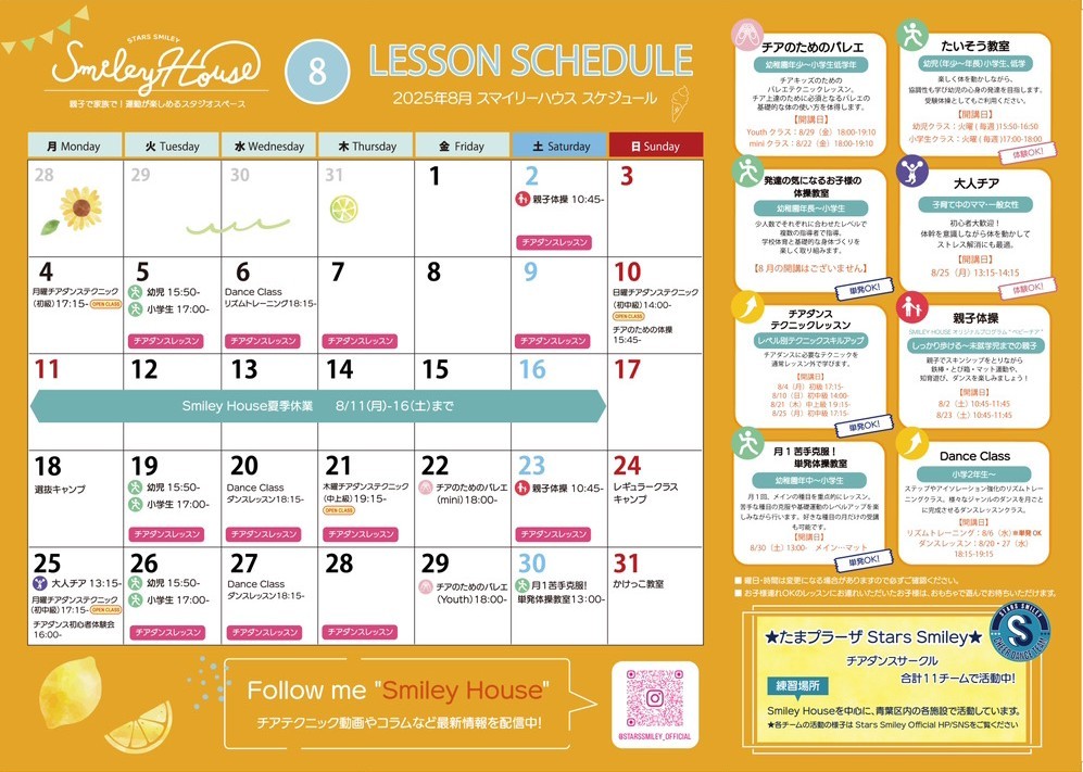 【2025年8月】Smiley House 最新スケジュールのお知らせ